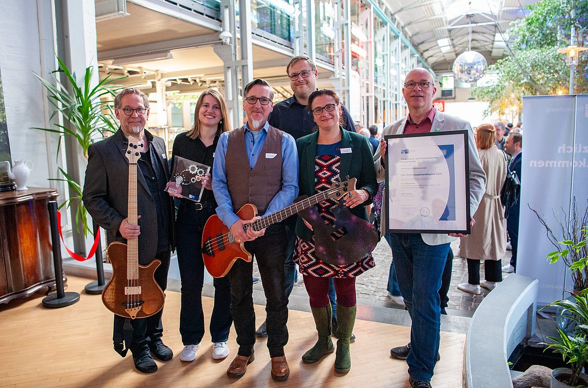 Die erfolgreiche Zusammenarbeit zwischen Bassmanufaktur und Universität sorgte für dieses tolle Ergebnis, dem E-Bass „Spock“. Die zusätzliche Ehrung mit dem IHK-Technologietransferpreises sorgt für zusätzliche Freude im Projektteam.